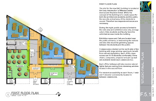 For the first floor, I was thinking to put like a light shelves where the natural lights could bouncing off inside the classroom area..